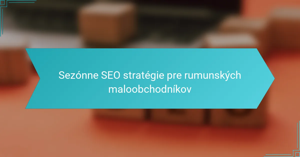 Účinné sezónne SEO taktiky pre rumunských maloobchodníkov zahŕňajú optimalizáciu pre miestne vyhľadávanie, vytváranie relevantného sezónneho obsahu a implementáciu schémy pre akcie. Tieto stratégie pomáhajú prilákať viac zákazníkov počas vrcholných nákupných období zvýšením viditeľnosti a angažovanosti.